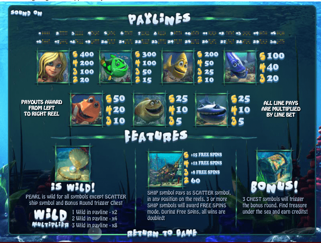 As I pointed out before, this is a sea-life themed online slot, with fish, mermaids, sea stars, treasure chests and sea stars as some of the symbols you will be presented with. Both, symbols and the theme is worked down following the best standards of BetSoft – to perfection. Everything is of extraordinary quality and there are additional features too, free spins and bonus game round.