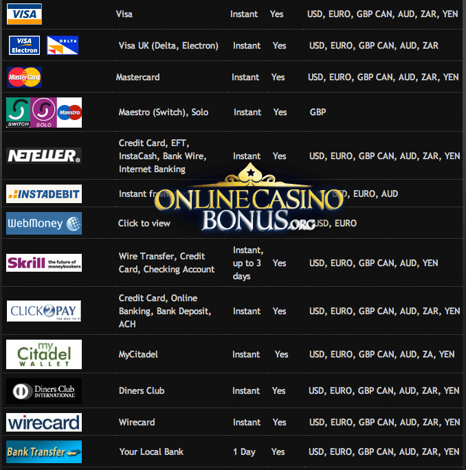 - Alternative Deposit Method Bonus -> deposit with Skrill, Neteller, uKash, EntroPay, Click2Pay or PaySafeCard to receive an extra bonus!
