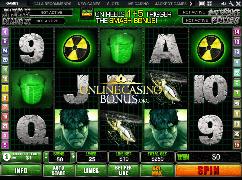 Gala’s most popular slots titles include Foxin’ Wins, Cleopatra, The Winnings of Oz, Football Carnival, Cluedo (Mega Jackpots), Spider-Man: Attack of the Green Goblin, The Love Boat, Adventures in Wonderland, X-Men, Iron Man 3, Monopoly: Dream Life, Fairest of them All, Madness: House of Fun, Big Bad Wolf and Little Britain. The truth is though, that there are hundreds of online slots for you to play at Gala Casino. A large amount of slot game titles have been taken from the popular Marvel comics, such as The Incredible Hulk.