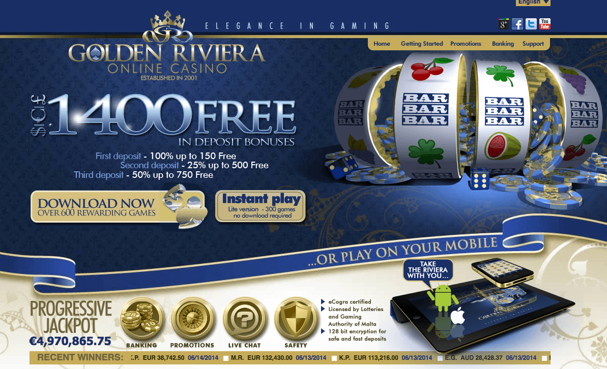 At Golden Riviera, you can play in one of the most elegant, authentic and realistic online casinos going. Golden Riviera is a traditional online casino site, which offers elegance in its gaming, and has remained largely unchanged (albeit with a few facelifts), since it first opened.