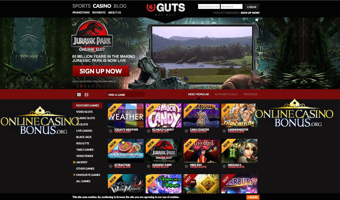 Guts Casino first launched in 2010, and ever since then, they’ve been licensed out of Curacao. They offer games from several of the internet’s top developers, including Net Ent, Microgaming, BetSoft Gaming, IGT and OMI Gaming.