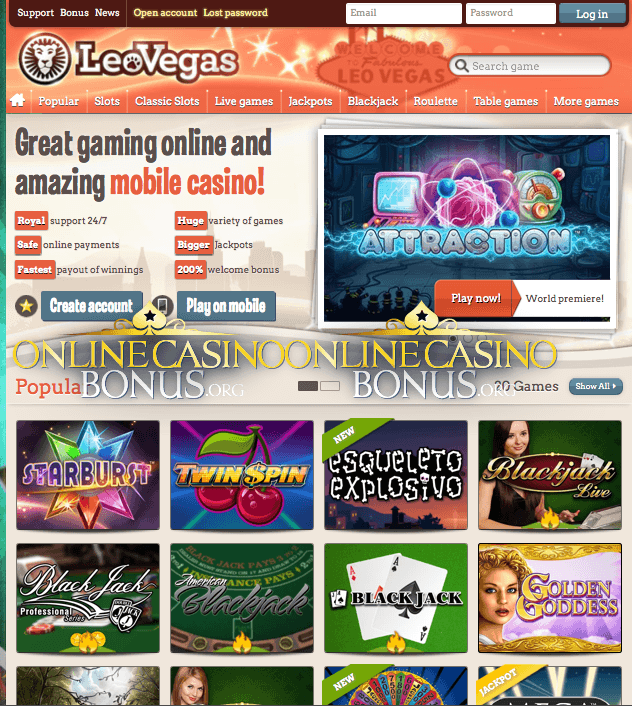 Some of the most memorable slots of all time can be found at Leo Vegas, as well as some of the newest titles. Attraction, A While on the Nile, Jack Hammer and Jack Hammer 2, Big Bad Wolf, Immortal Romance, South Park, Lost Island, Lights, Jurassic Park, Aliens, Lucky Angler, Wild Water, Jack and the Beanstalk, Cleopatra, Hall of Gods, Mega Fortune, Mega Moolah and Arabian Nights are just some of the games you can find at Leo Vegas Casino.