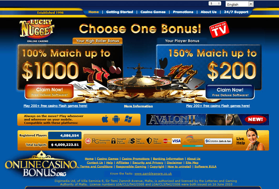 Lucky Nugget Casino has been taking bets since it was first established back in August 1998. As one of five successful sister casinos it operates under a licence granted by the Government of Malta. Its growing player numbers can be attributed to the casino’s choice of generous sign-up bonuses as well as its reputation for turning regular players into instant millionaires. Of course, that’s not to say that you’ll be one, but instead I’m referring to the fact that if you win big, Lucky Nugget will definitely honour the payments and you’ll get what you earned!