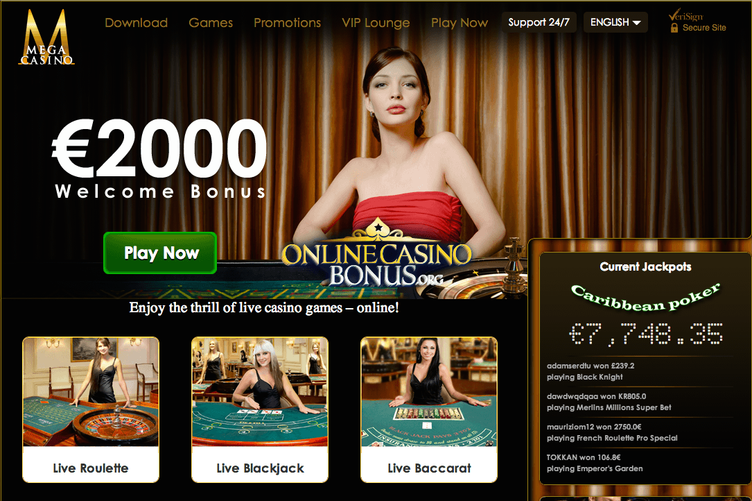 Currently Active Mega Casino Bonus Coupons: