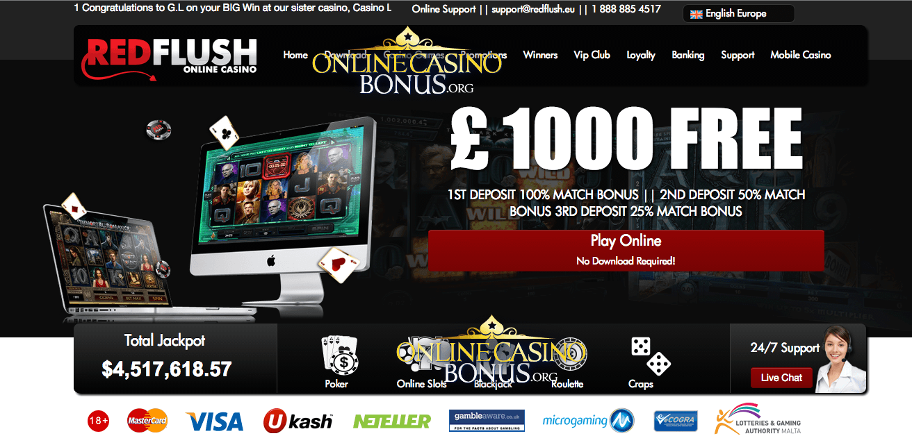 Red Flush Casino is playable either in your web browser (via the instant play domain), or you can opt to download the software to your PC, and install it. Red Flush Casino is powered by Microgaming in both instances. They also have a fully working mobile casino site for you to enjoy.