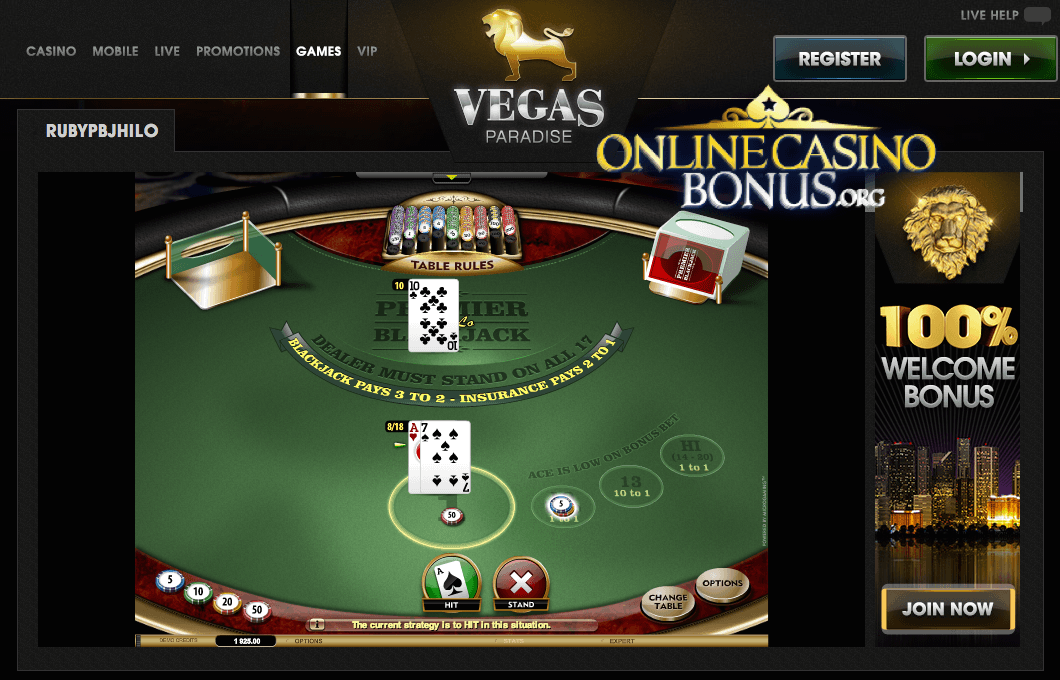 BlackJack is offered in multiple game types including Classic, Multi-Hand, Spanish 21, Hi-Lo Gold and Vegas Strip ones. Lets take a look at one of them right now and you can check them all, when you sign up to www.vegasparadise.com – sound okay?