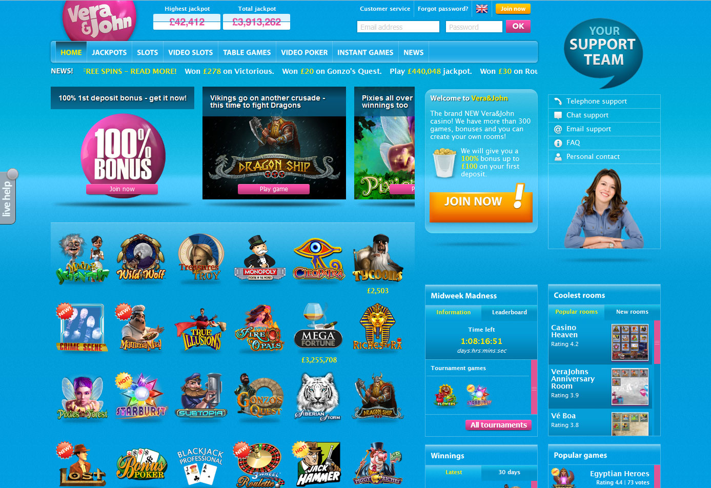 Vera & John offers live customer support via toll-charged telephone line for international players, whilst players can also access a live chat client via the casino, and they can use e-mail support, if they wish.