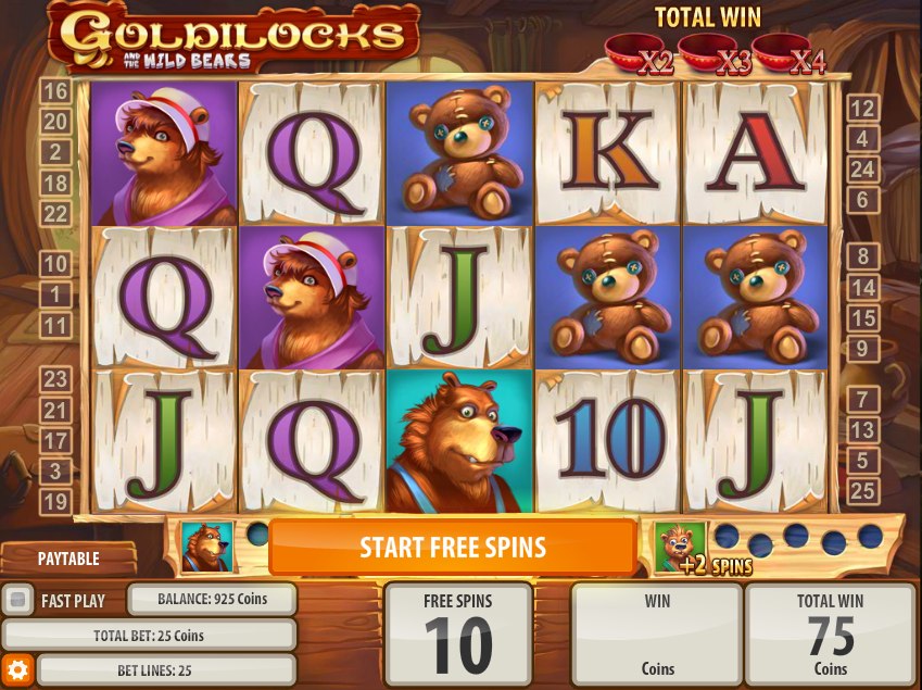 The Quickspin designed Goldilocks slot comes with a fully adjustable set of game play and staking options and as such you can play a small or large number of paylines on stake levels at which you are happy to do so, however by playing this slot with all 25 paylines in play you will always have a very good chance of winning some significant amounts of cash as you will never miss out on any winning combination spinning in.