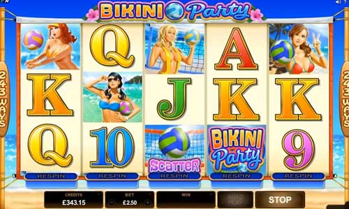The scatter symbol is the most important on “Bikini Party” this is represented by the Volleyball ball, if you get at least three of these balls on the reels, the bonus round is triggered and you can play for 15 spins totally free. The best part of getting free spins is that if you hit any winning line, this will generate a 3x multiplier for all wins.