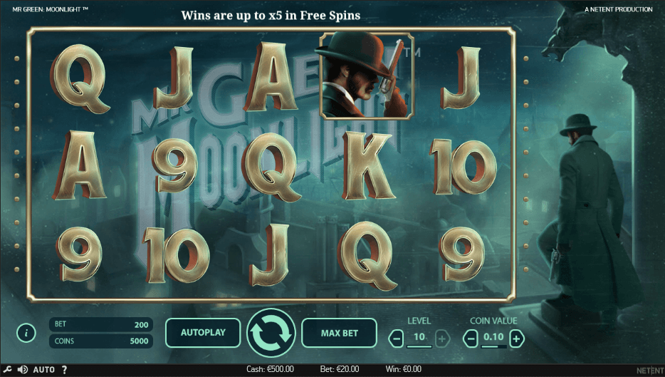 The Mr. Green Moonlight video slot is a game that features an appearance that makes it look like a classic detective mystery. It has the theme of a nineteenth century detective story complete with its own ominous appearance that makes it more intriguing. The game particularly has five reels and twenty lines. Players can adjust their coin totals and the multipliers that they want to use when betting money on this game.