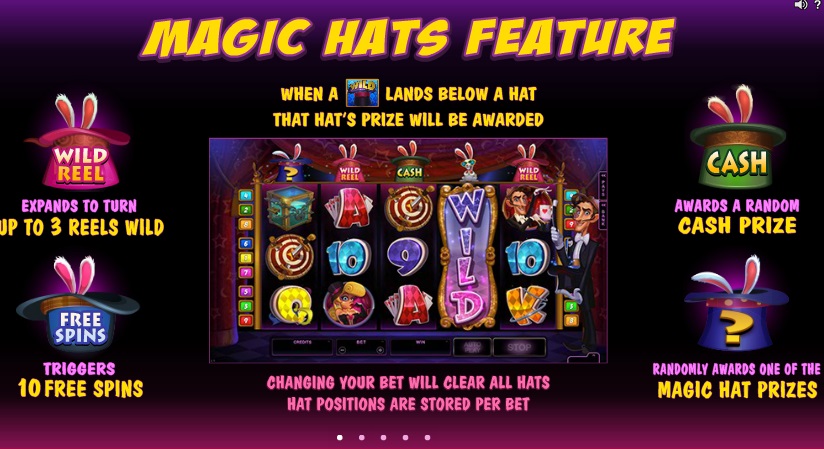 MicroGaming have finally taken a step forward and introduced a new feature to their slot machines, but have they really? The Magic Hats feature works like this – every time You make a spin, a bonus hat is placed on top of one reel. The prize hidden in the hat can be either free spins, instant cash bonus, wild reel or a mystery prize – hats are marked, so You’ll know what prize is up for grabs.