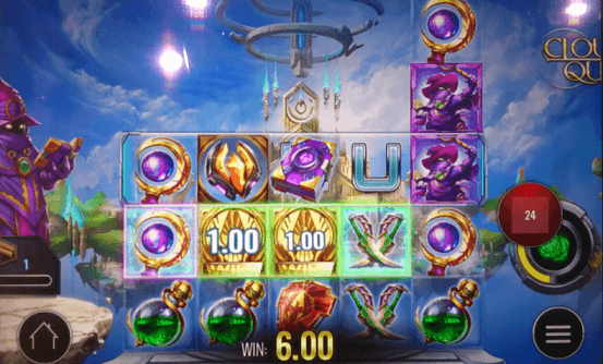 The other special feature which subverts regular slots gameplay in Cloud Quest is the wild symbol. Wild symbols are a staple of the slots world; letting players get a symbol they are missing to improve combinations on the reels. However, wild symbols in Cloud Quest don’t quite work like that. Every time a player gets a combination, the symbols in that combo will magically disappear, leaving only the one in the middle, which will be transformed into a golden wild that can be used with any other symbol on that spin.