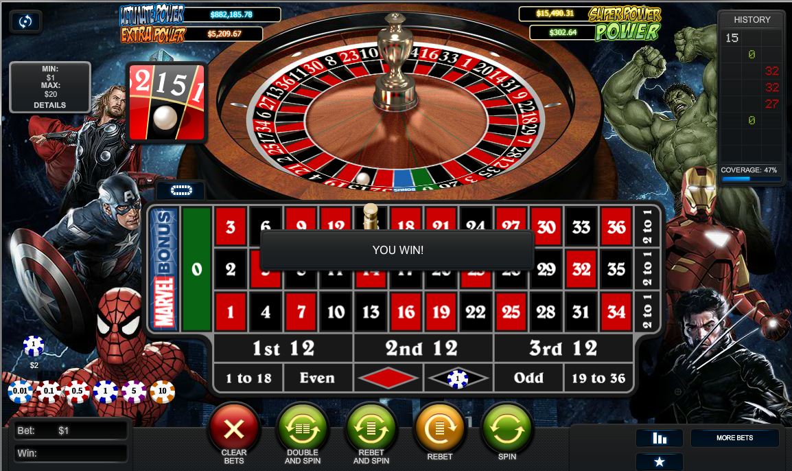 Before entering real money play, try Marvel Roulette completely free. It’s the exact same version available at PlayTech casinos, so you’ll be the one to judge if it is worth it! Please allow up to 1 minute for the game to load properly!