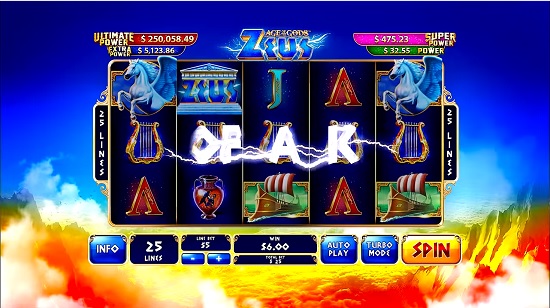 Age of the Gods is a 5 reel and 25 payline online slot machine that provides you not only the sensation of playing with the powerful Zeus but also the feeling of living 25 centuries ago, in a whole different world that we can barely imagine.