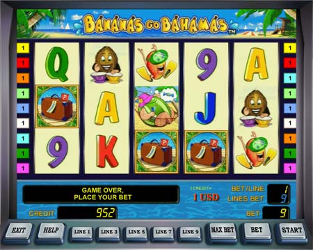 There’s nothing original about the gaming control bar in Bananas Go Bahamas. Many casino software developers make certain that all their slots have a unified gaming bar, that appears on all of their titles. Novomatic is no different. This gaming bar will tell you how many credits you have left, let you bet per line and let you adjust your coin values. You can also choose to place the maximum bet, as well as use the auto play button to play numerous spins in succession.