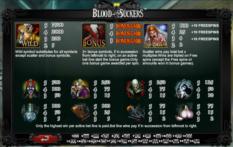 blood suckers slot paytable