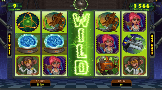 A jar containing a mouse is the bonus icon in this slot. If it appears on reels one, three and five at the same time, the player will trigger a Laboratory Bonus. This bonus can even be triggered during the free spins round. If it is, free spins will resume right after the bonus round has concluded.