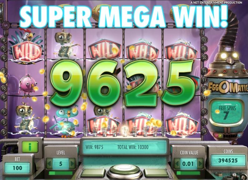 Eggomatic slot from netentIf bonkers and barmy themes with 100% unique gameplay structures are your idea of a good time; then the EggOMatic slot is definitely for you. Why not claim a bonus whilst, you’re at it? Like the EggOMatic slot bonus that is available on this very page? EggOMatic is a Net Entertainment developed 3D slot, which features robot chickens, wacky eggs, and some seriously creative special features and prizes.