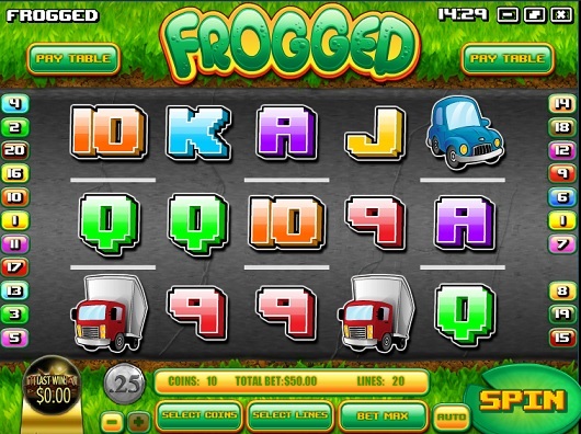 Forget about your mouse, your space bar and the arrows located in your keyboard. Now, you have to play Frogged by clicking the spin button located on the right corner. On the main screen (which has the same design of the old game) you will find all the buttons that you need to play.