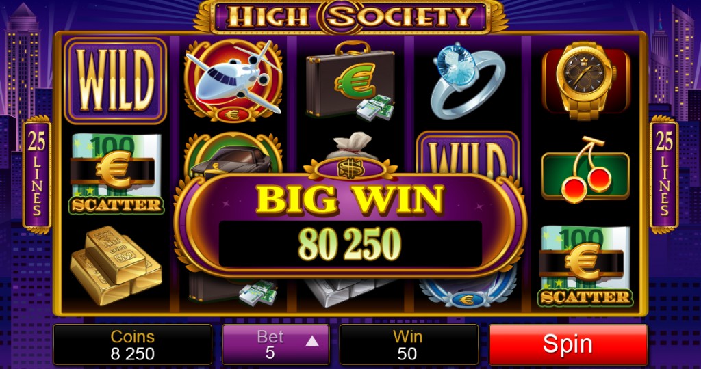 High Society carries a fixed non-progressive jackpot of 30,000 coins. That is considerably generous for a slot that only has 25 paylines. In order to win this big pot, you will need to acquire 5 of the jet plane icons on any of the game’s paylines.