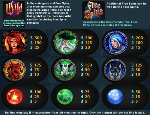 In some slots, you can rely on the bonus rounds for all your big wins. That isn’t really the case with the Magic Portals slot. The free spins round won’t actually generate that much, in terms of winnings. Aside from the fact that you won’t be paying for 10 or more spins. The Wild Transformation is where the real money is be made and that’s not exactly a bonus round. Even though the pay-outs are in relation to what you wager, it is obvious that the more you stake, the bigger your wins will be.