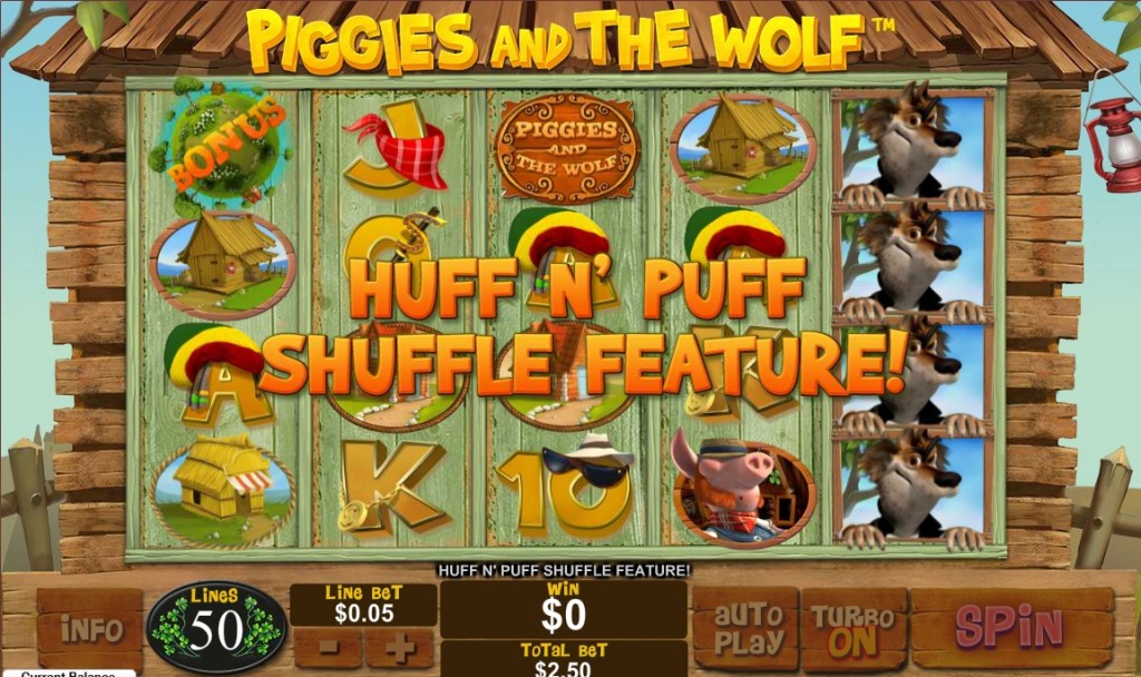 The non-progressive jackpot is actually rather small in stature. A total of 2,500 coins can be won by lining up 5 wild icons on any of the game’s 50 paylines. The next highest paying icon in the game is the cool piggy or brick house symbol, which offers a total of 1,000 coins when 5 are struck on any payline.