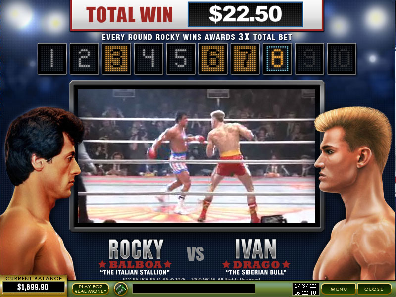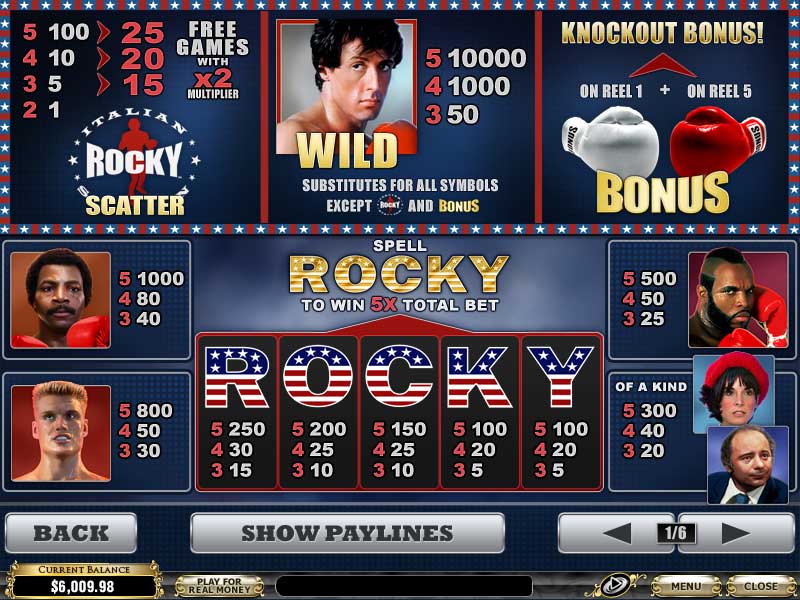 Rocky can be played as a free game. Before you decide that you want to put your hard earned moolah into a slot game, perhaps you’d better try it first. Much like you would test drive a new car? The Rocky demo contains all of the features of the real game, except that you cannot win real money. Thought, neither does it cost you anything to try. Wait a little and a free Rocky slot game will load below!