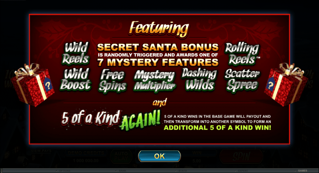 You’re really going to want to try out this slot before you play it. It’s not a question of whether you’ll like Secret Santa or not. That is simply answered, you’ll love it. What you may wish to know is how the bonuses work, and how often they are triggered. You won’t have a definitive answer, but by playing the Secret Santa free play slot, you will have some idea of the slot, its features, how much it’ll cost to play, and how frequently the bonuses are triggered.