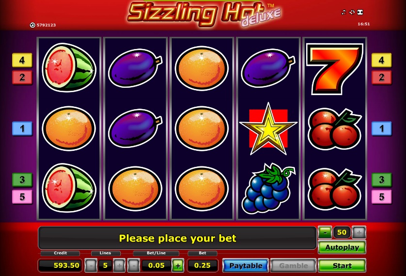 Sizzling Hot is a modern day fruit machine, which has been created by Novomatic. This slot contains many wonderful and authentically drawn fruit symbols, which gives you a slice of the glory days of this particular type of slot machine game. Sizzling Hot can be found as part of the Gaminator online slot collection, and is one of the most basic slots represented on that particular platform of slot game. Play it for real money or completely free at StarGames, MyBet or Energy Casino!
