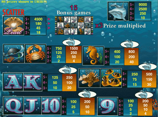 The wild icon is the dolphin icon, which is also the jackpot paying symbol. The wild icon can substitute itself for all other icons in the game, barring the scatter symbol. The wild symbol will also double all winnings that are acquired when it is used to complete a winning combination on a payline.