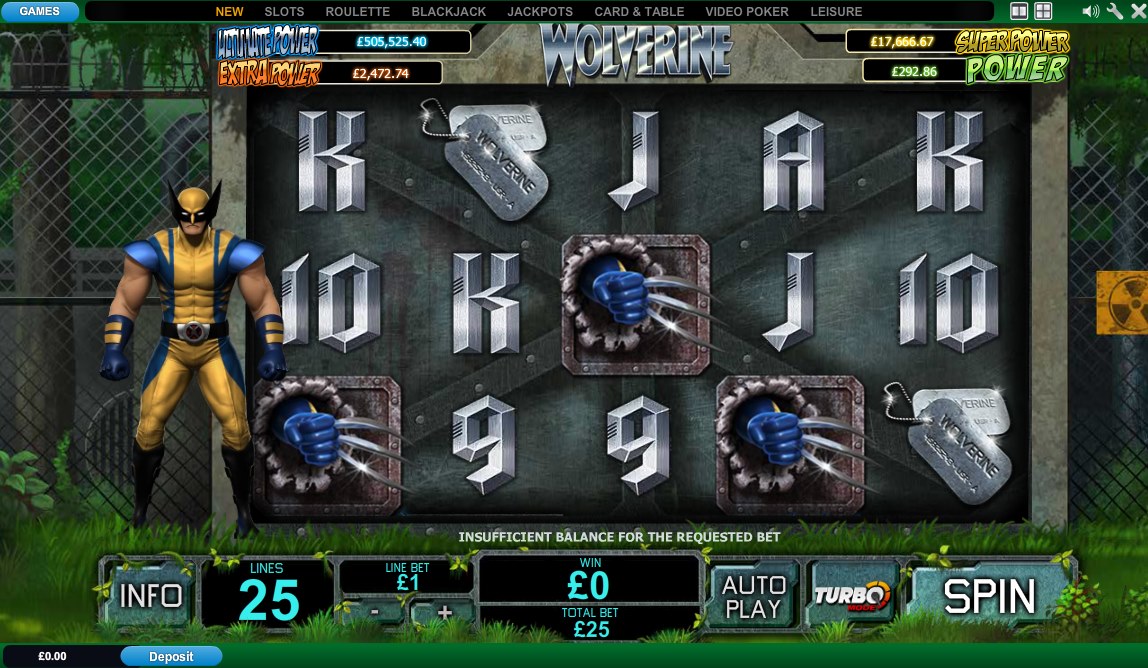 There is absolutely nothing you can do to trigger the progressive jackpots in this slot. It really is all down to luck. If you wager larger sums of money, you are more likely to trigger the bonus; but this is by no means a guarantee of landing one. The progressive jackpots in this slot can also be found in other Marvel Progressive Jackpot slots, so if Wolverine isn’t your cup of tea, you can always play one of the other Playtech powered Marvel super-hero themed titles, as they all share the jackpots.