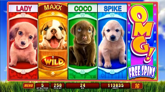 WMS slots are great to play because they can pay really big in the bonus features. OMG! Puppies has the same big payout potential and we were more than satisfied to see some real play big wins. The big payouts are due to the free spins bonus round and the way it is composed.
