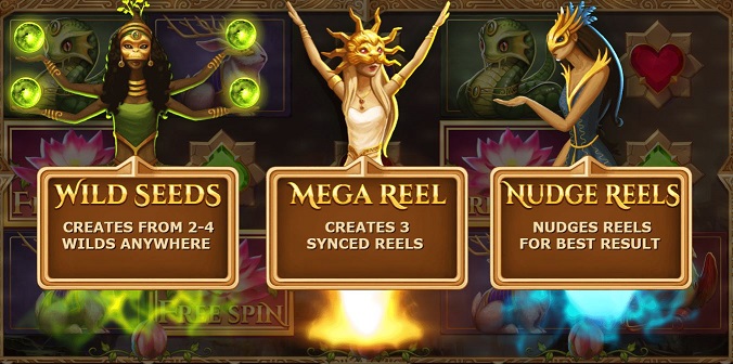 There are three particularly important features that can appear on a spin. First, the Wild Seeds feature will give players two to four additional wild symbols around the screen. This feature appears at random while the symbols will show up at multiple places around the slot.